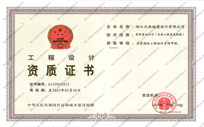 热烈祝贺集团园林设计资质升级成功,天然城建院一举晋升甲级院行列。