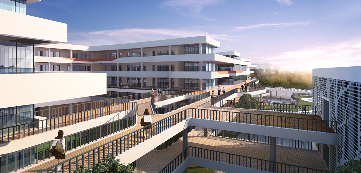 项目名称:龙湾区实验中学青山集团校区(瑶溪南新二中)工程(中标项目) 建设单位:温州高新技术产业开发区投资建设开发有限公司 项目地址:浙江省温州市龙湾区 项目规模:本期用地面积36045.3平方米,地上建筑面积28763平方米,地下建筑面积15000平方米。建筑形态上契合地形,结合传统书院模式布局。 项目负责人:宋光伟 / 朱高勇 方案负责人:杨建察
